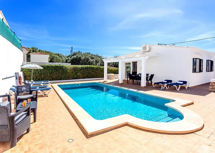 Villa Amber dysponuje tarasem z widokiem na ogród, 20 min jazdy od lotniska Menorka.